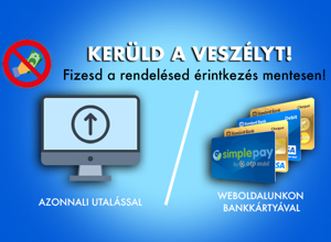 Fizess érintkezés mentesen! 2020-04-11 Weboldalunkon bankkártyával, vagy azonnali utalással is lehet fizetni. Bővebben |